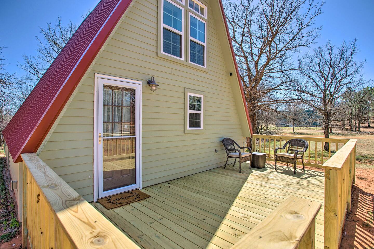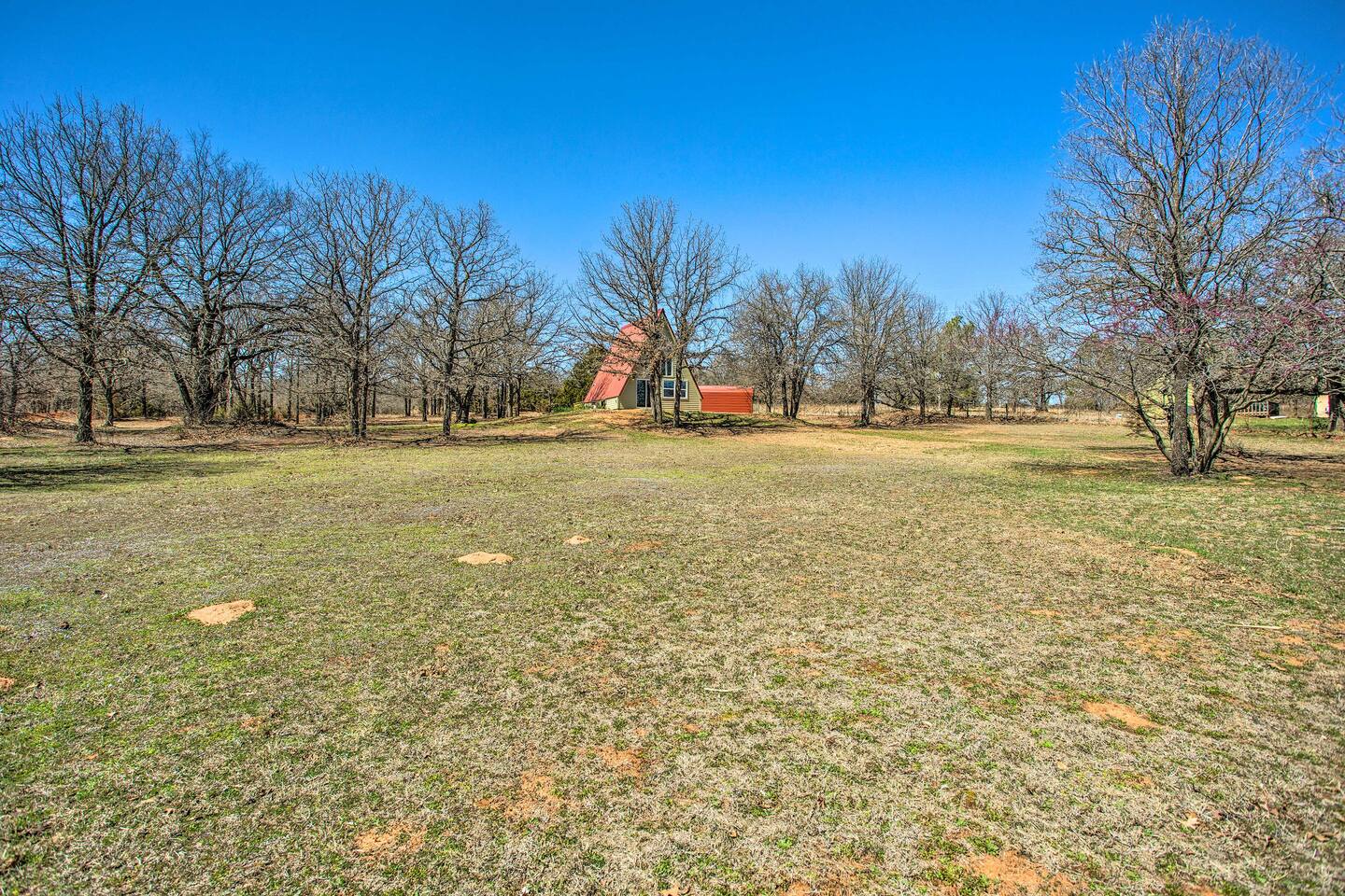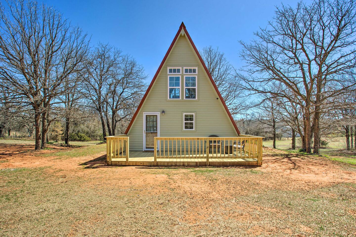 Relax & unwind, this beautiful A-Frame cabin is nestled on 2.5 private acres of peace and quiet. Escape the city life in this immaculate cabin featuring a modern kitchenette with new furnishings. The spiral stairs lead to a comfortably sized loft and sleeping area. A short drive away you can experience local wineries, attractions, and the ever popular Lake Thunderbird State Park. Once back home it is time to enjoy the spacious deck with Chiminea along with spectacular views of the landscape.