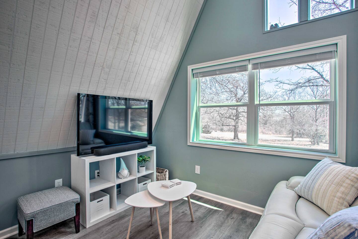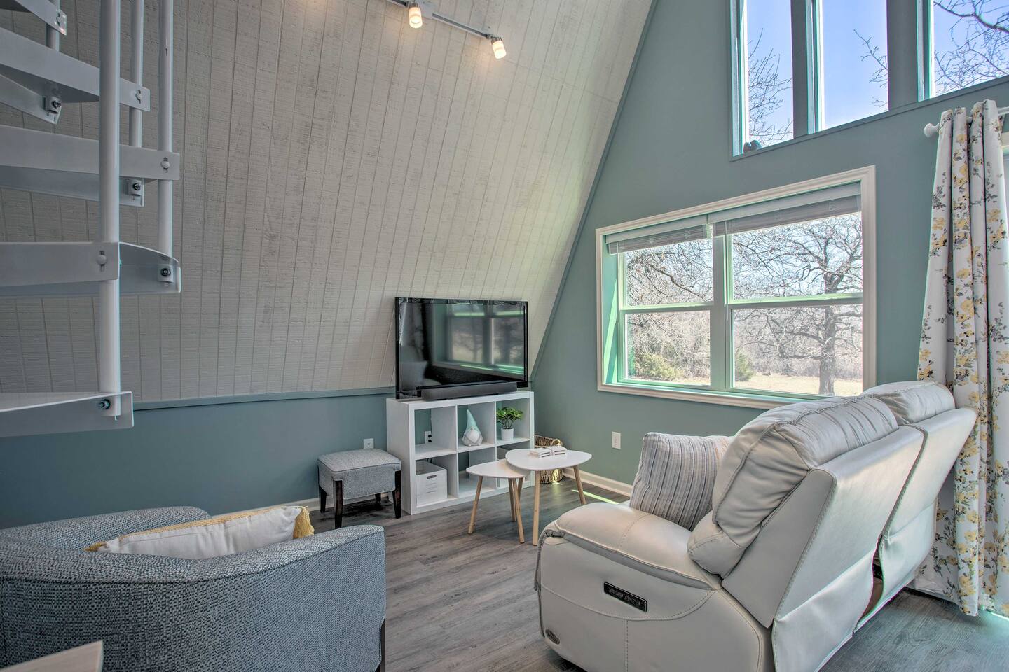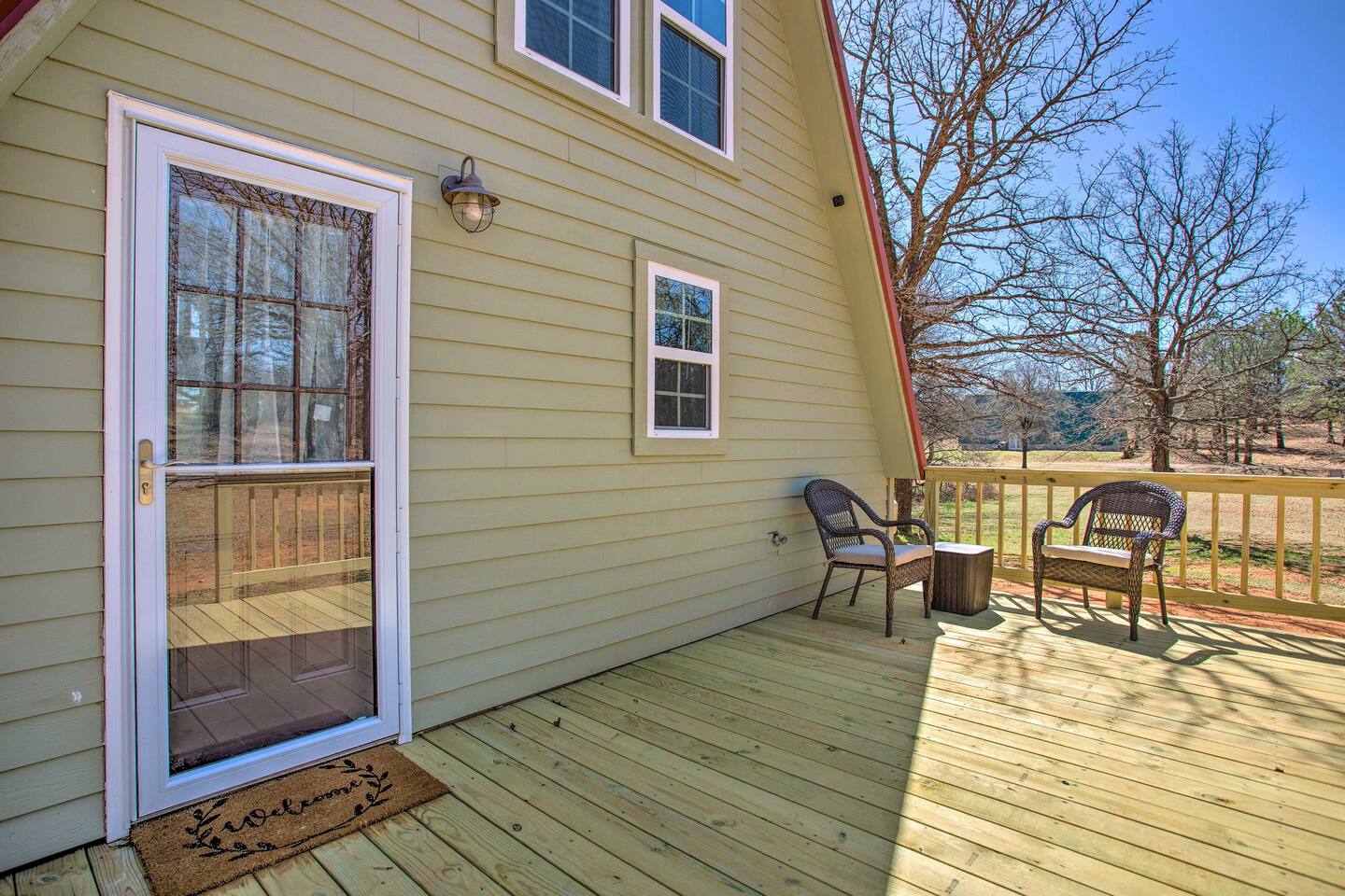 Relax & unwind, this beautiful A-Frame cabin is nestled on 2.5 private acres of peace and quiet. Escape the city life in this immaculate cabin featuring a modern kitchenette with new furnishings. The spiral stairs lead to a comfortably sized loft and sleeping area. A short drive away you can experience local wineries, attractions, and the ever popular Lake Thunderbird State Park. Once back home it is time to enjoy the spacious deck with Chiminea along with spectacular views of the landscape.